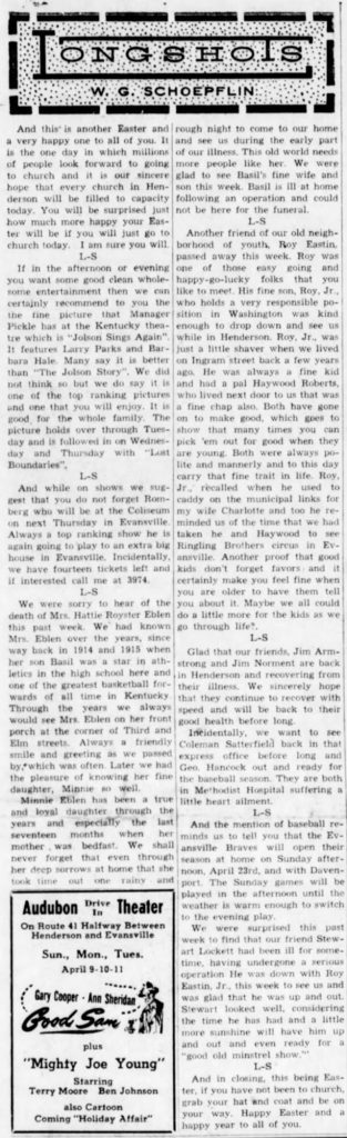 LONGSHOTS by W. G. SCHOEPFLIN Sunday April 9, 1950 And this is another Easter and a very happy one to all of you. It is the one day… - 300 Rudy