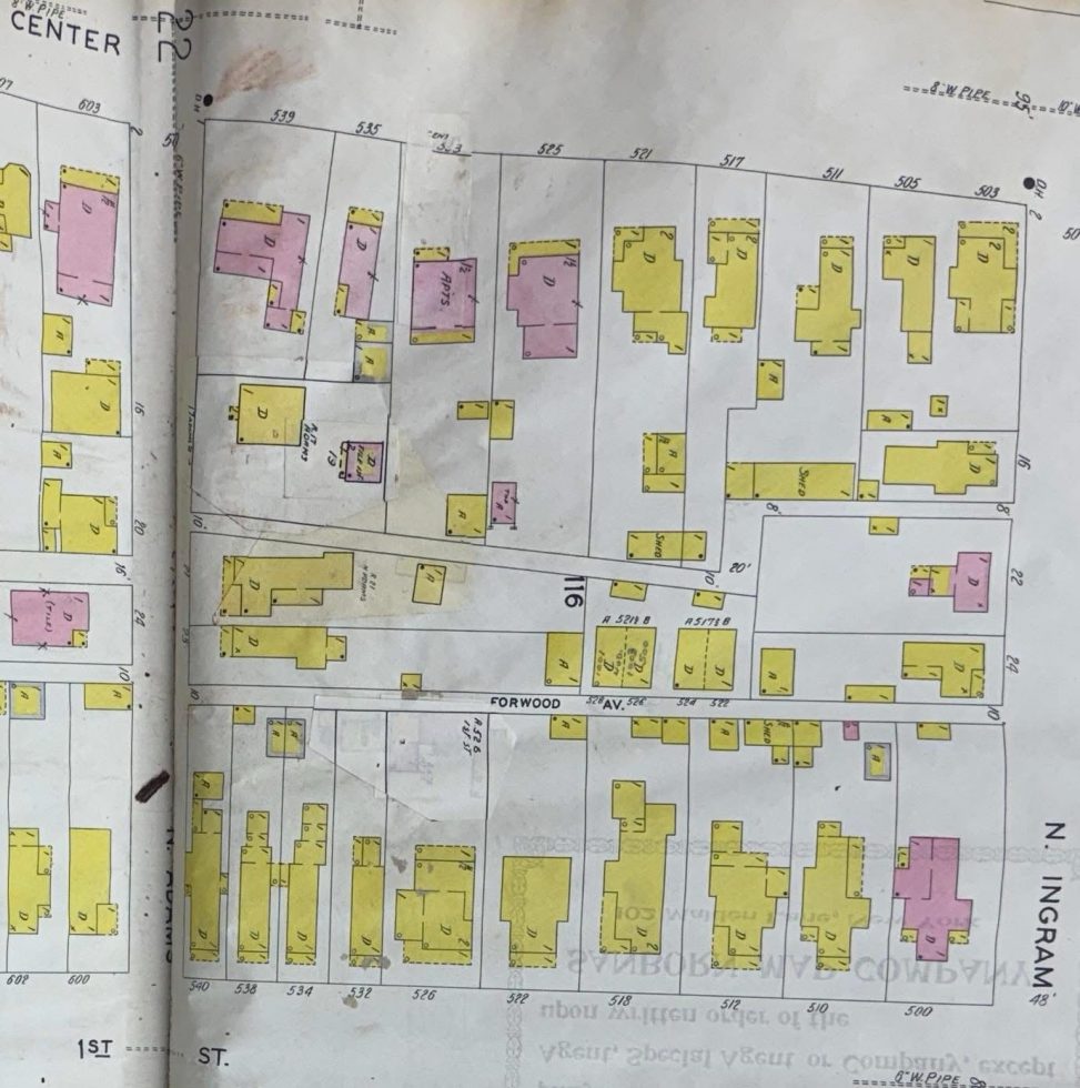 Shown here is a section of a Sanborn Fire Insurance Map, where you can spot an alley labeled Forwood Ave running just behind the doctor’s residence. It’s a small but fascinating detail that connects the map directly to one of Henderson’s most prominent citizens of the early 20th century.