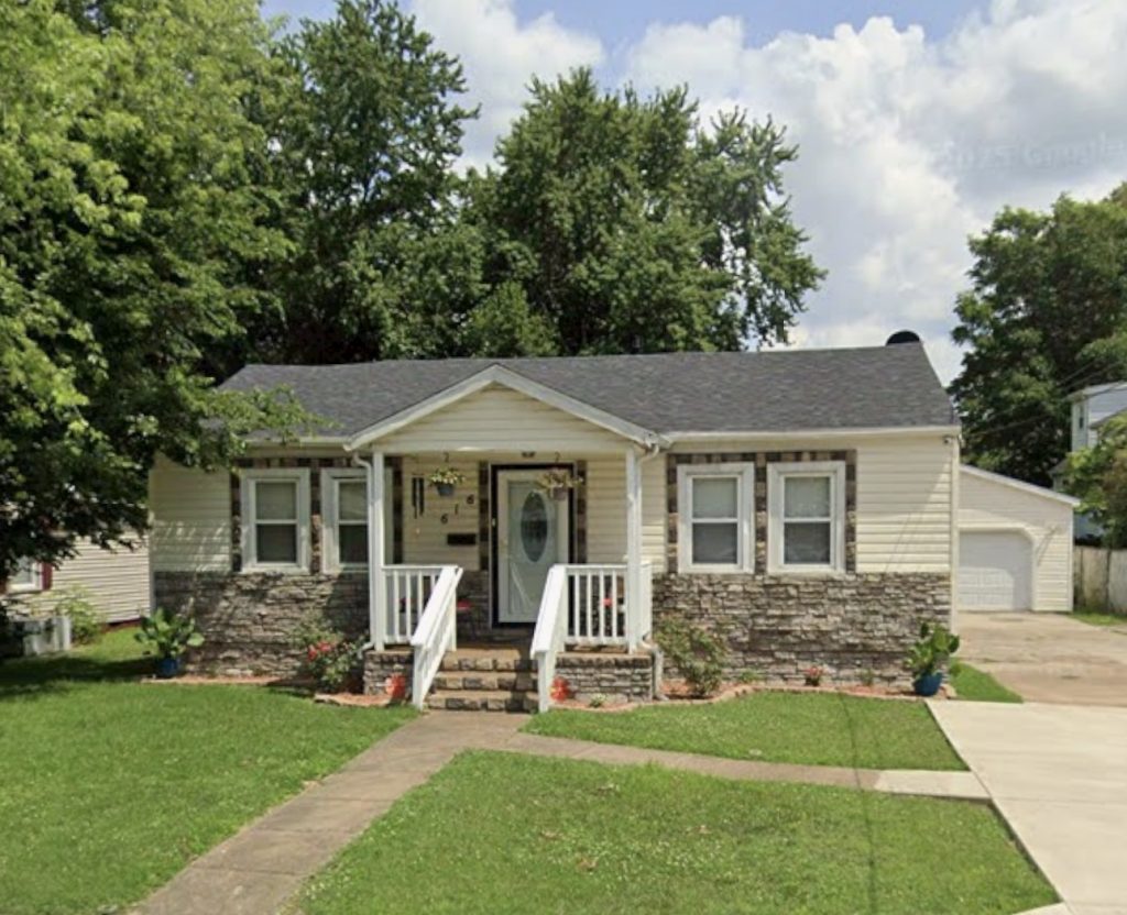 Today, the house retains its mid-century footprint with a detached one-car garage, standing as a representative example of Henderson’s practical, post-war residential growth along South Adams Street.