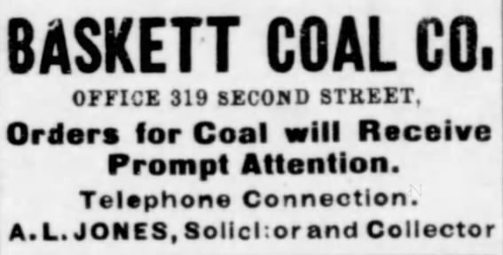 In 1888, when plans were being made for opening this mine which was known as the Baskett Coal Co., the entire section around was covered with heavy timber, mostly sugar trees. When the work started on the mine settlers began to drift in and began hewing down trees and building their homes. The coal company bought ten acres of land which is now covered by Baskett. They built small homes to which they could induce men to come from other points with their families to settle here and work in the mine. The first private home completed was that of Al Keach.