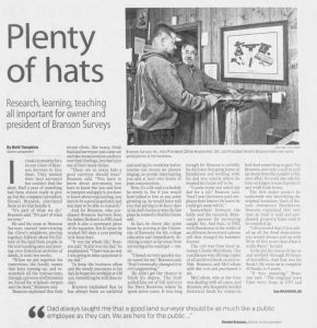 In 2015, that reputation was recognized when Branson Surveys was named Small Business of the Year by the Henderson Chamber.