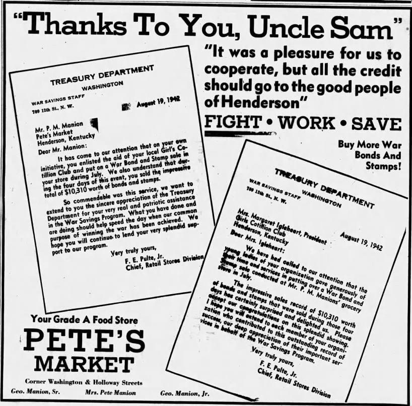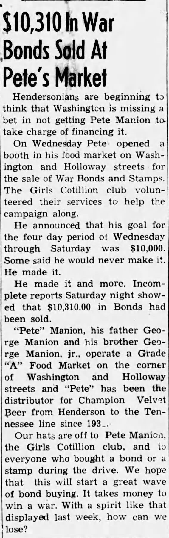 This later became Pete’s Market, owned and operated by “Pete” Manion, his father George Manion and his brother George Manion, Jr.