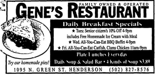 Gene’s Restaurant was located at 1095 N Green Street, owned by Gene and Zack Thomason. Gene serves classic Southern cuisine by Sara Anne CorriganBrains, barbecue and burgoo. The…