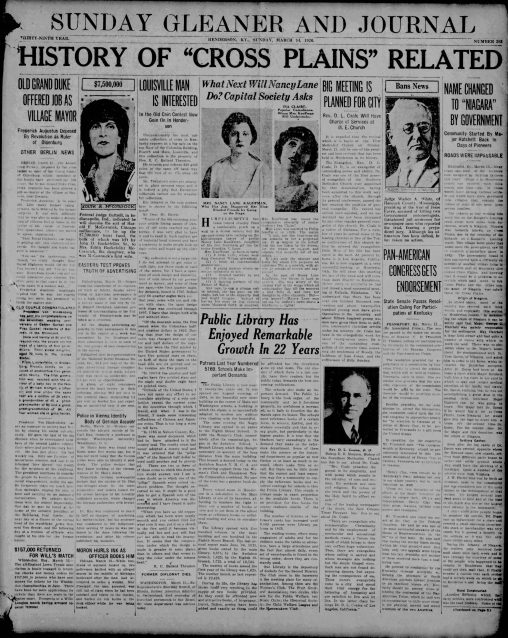 1889 Directory Recalls Scenes of Many Years Ago Vivid glimpses of life in Henderson forty-five years ago are seen in glancing through a city directory of 1889 owned…