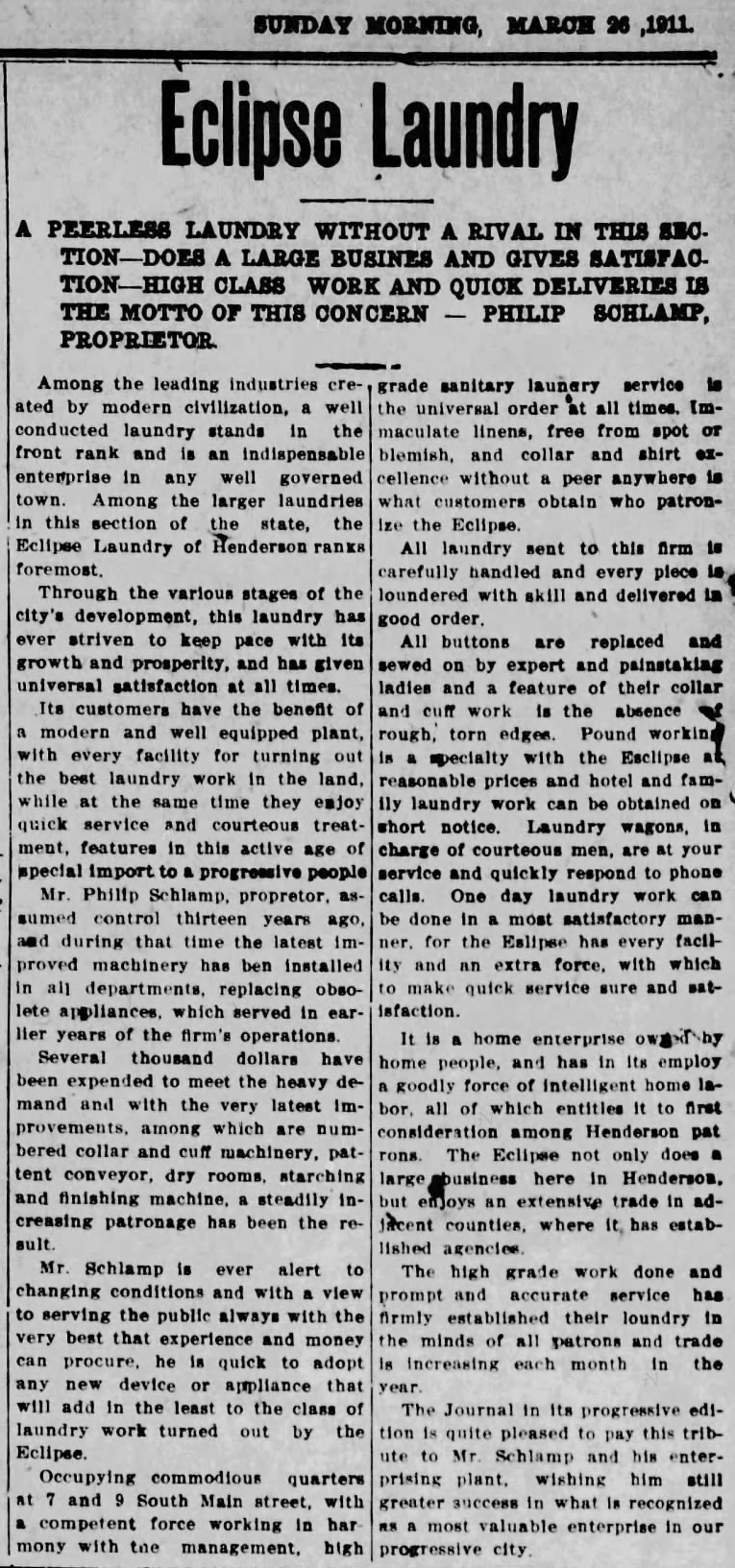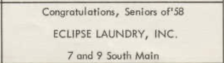 Eclipse Laundry Eclipse laundry was located at 7 & 9 S Main Street, Phillip Schlamp proprietor. November 16, 2025 In Uncategorized ← Previous post Next post →