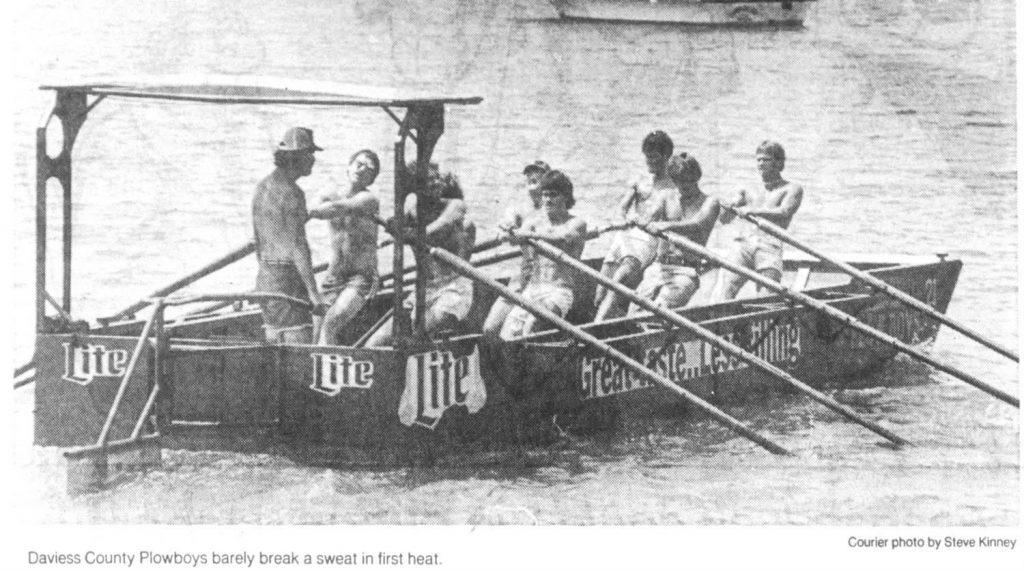 The Gleaner of Aug. 14, 1981, carried a Donna Stinnett story that began with new lyrics for John Prine’s song “Para-dise.” The ode to beer-drinking was penned by Bill “Squirrel” Bauer, crew member of the Morganfield boat, who had been in every race except the first.