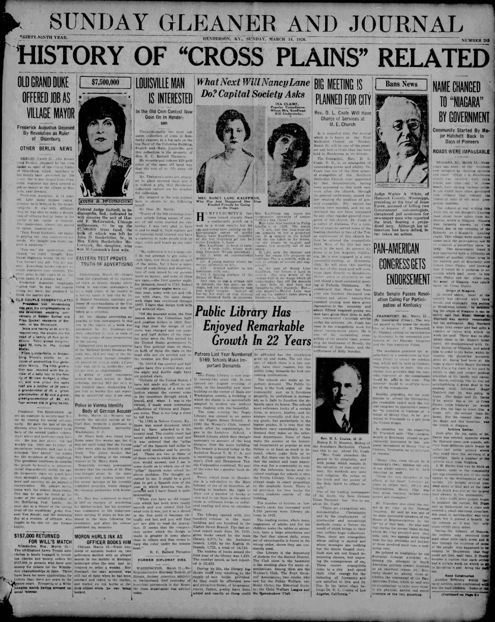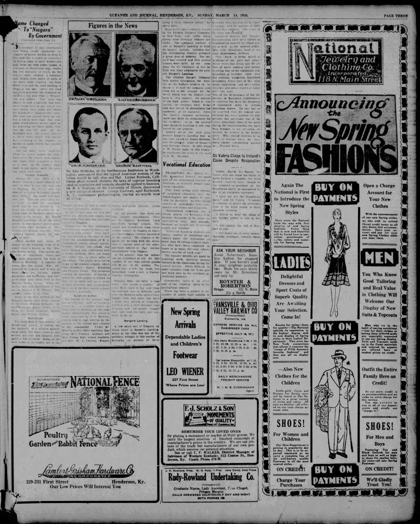 GLEANER AND JOURNAL, HENDERSON, KY., SUNDAY, MARCH 14, 1926.