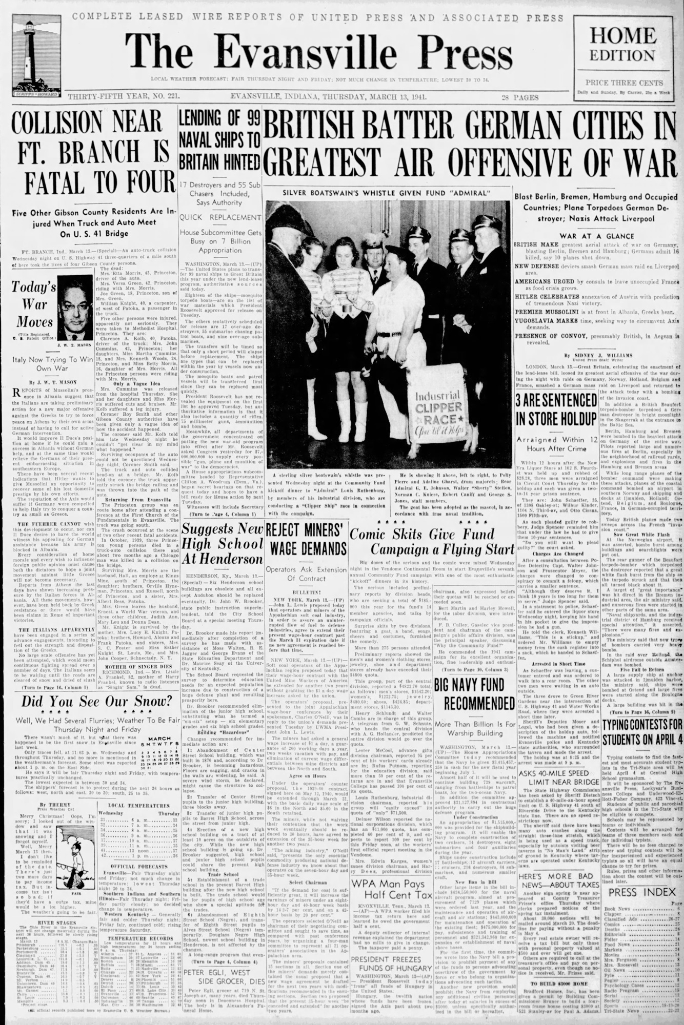 This photo is described as boys selling newspapers in Henderson, KY. The paper is the Evansville Press, March 13, 1941. I suspect it was taken the same day as the court house photo.