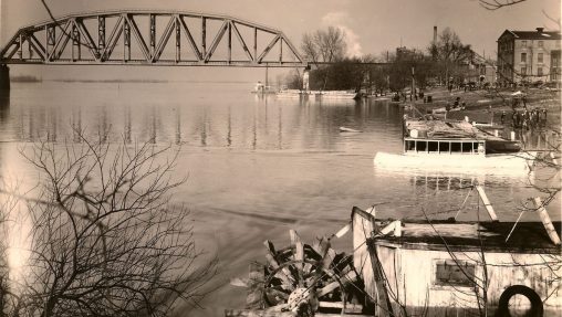The Ohio River crested Jan. 31, 1937, at 53.9 feet, and it became the worst American flood on record. Also see: Audubon Mill Park 1937 References: Gleaner: Floodless…