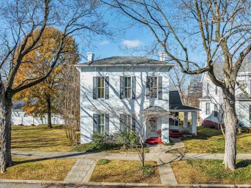 509 N. Main St. In its form, plan and roofline, this stuccoed brick house reseables its circa 1860 neighbor to the south, but its segmental-arched windows throughout, many…