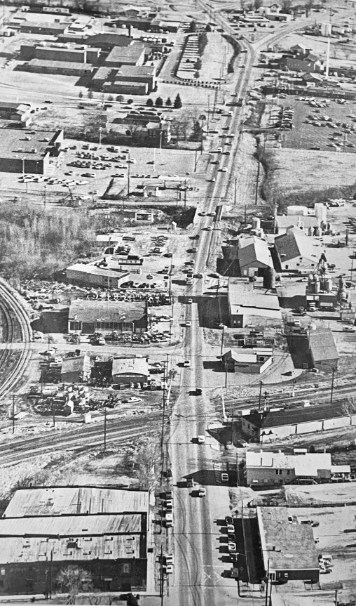 Snow covers the intersection of Second and Main streets around the turn of the century. At left is a building housing a carpet dealer, later the site of…